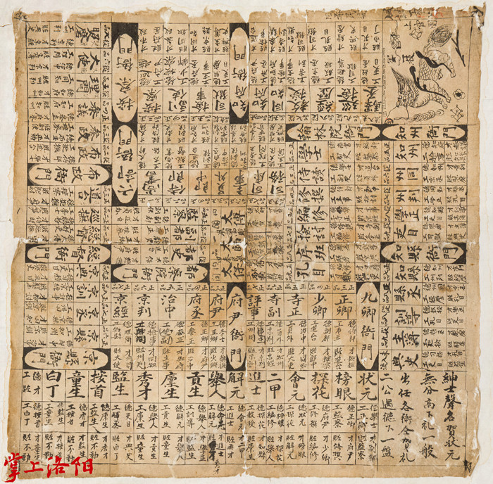 “上官图”是一种以不断升官为目标的赌赛游戏,将异常复杂的晋升之路交由掷出骰子的大小来决定,规则与玩法与现代游戏“大富翁”几乎一样。